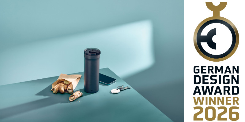 Ausgezeichnet startet AdHoc ins neue Jahr: Die Thermobecher-Serie Pulse, designt von Robert Franzheld, wird mit dem German Design Award Winner 2026 hochkarätig geadelt.