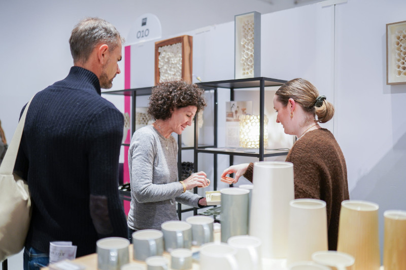 „Es war nicht leicht aus den vielen interessanten Bewerbungen seitens Studierender zu entscheiden, wer kostenlos an der BLICKFANG Messe in Wien teilnehmen kann. Insgesamt 10 Bewerber:innen wurden final ausgewählt und zeigten vor Ort ihre Prototypen und ersten Produkte und konnten so erste wichtige Messeerfahrungen sammeln.“