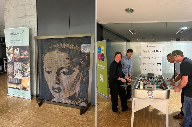 Bei neun Schulungsmodulen in vier Tagen drehte sich alles um RS Barcelona, Serralunga, Extremis, Modularte, Verde Profilo und DRAENERT, vertreten von Klaus Flachberger, sowie Glamora, G.T. Design und Kriskadecor, vertreten von Beatrix Flachberger – und es kam, wie es kommen musste: Die große Vorfreude erwuchs zum erfolgreichen Event, gespickt von Information und Inspiration, begleitet von Spaß und – wortwörtlich – Spiel, Networking und Austausch in gemütlicher Atmosphäre.