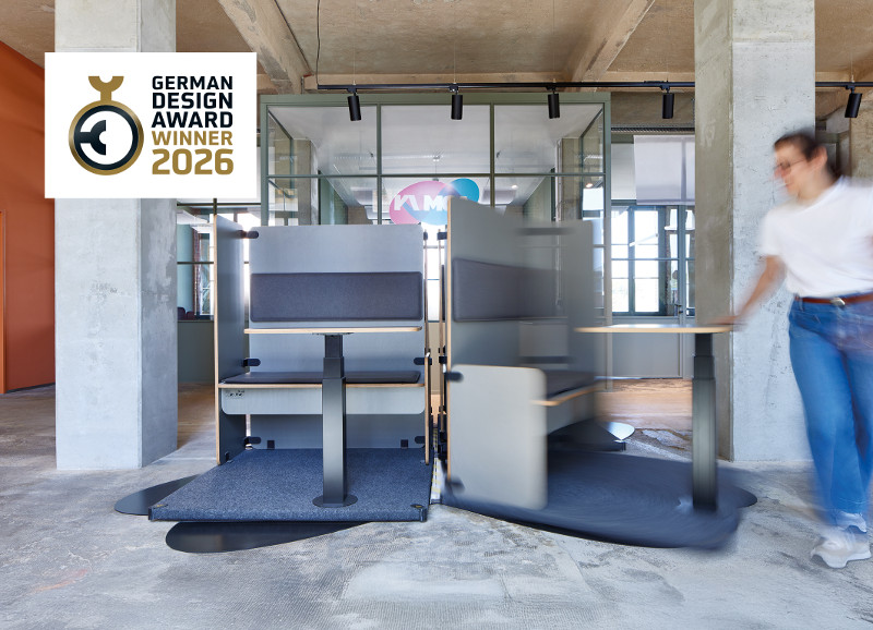 Dies würdigt auch die Jury dies German Design Award 2026, entsprechend deren Ansicht „RoomSpin“ mit seiner flexibel choreographierten Raumgestaltung neue Maßstäbe in der Anpassungsfähigkeit setzt.