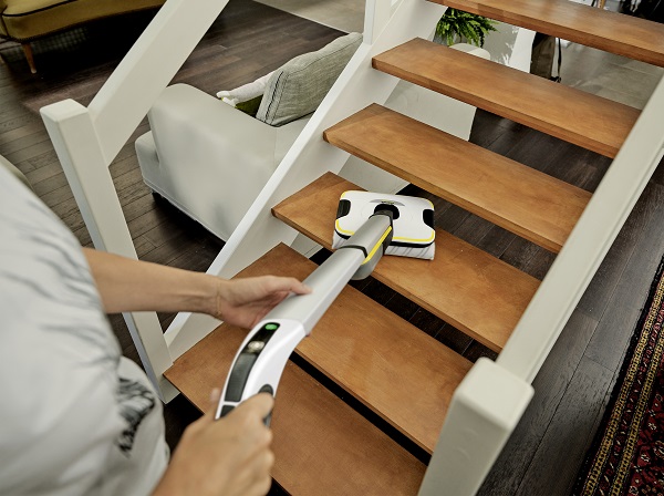 Das neue Flaggschiff der Kärcher-Hartbodenreinigerreihe arbeitet mit vier gegenläufig rotierenden Reinigungswalzen, die permanent mit Frischwasser und Reinigungsmittel befeuchtet werden. Die Walzen nehmen jeglichen Haushaltsschmutzzuverlässig auf und wischen den Boden sowohl in der Vorwärts- als auch in der Rückwärtsbewegung. Dank eines 2‑Tankssystems wird das Schmutzwasser in einem separaten Behälter aufgenommen und nicht auf dem Boden verteilt. Auch größere Teilchen wie Cornflakes und Haare stellen für den FC 7 Cordless keine Herausforderung dar, vorheriges Staubsaugen ist nicht nötig. Ist der Frischwassertank leer, gibt das Gerät dem Nutzer ein visuelles und akustisches Signal, bei vollem Schmutzwassertank schaltet sich der FC 7 Cordless selbstständig ab.