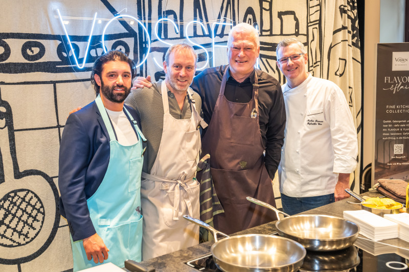 Es war ein Staraufgebot, das die erste Küchentextilkollektion von VOSSEN dieser Tage in top Location im praktischen Einsatz erlebte.