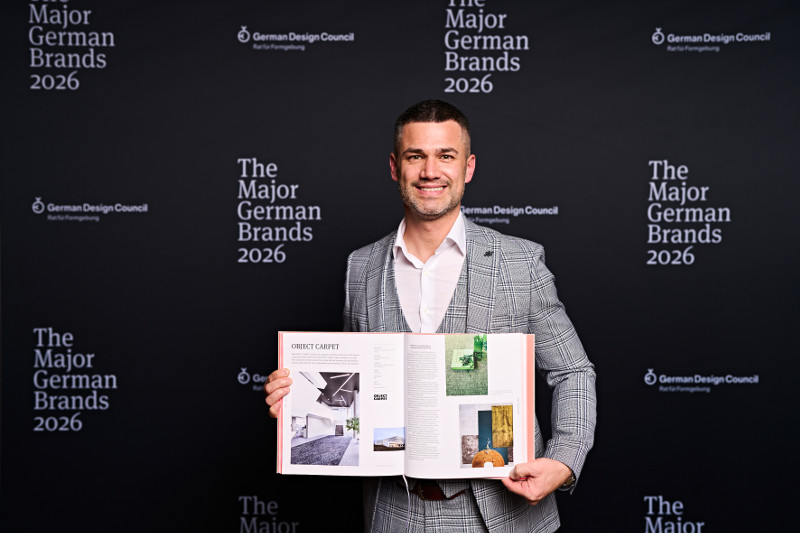 Innovativ, kreativ und hervorragend ist OBJECT CARPET. Dies bestätigen nicht nur hochkarätige Auszeichnung, die das Unternehmen am laufenden Band einheimst, sondern auch die erneute Prämierung als eine der „Major German Brands 2026“. Mit dieser Anerkennung würdigt der vom Rat für Formgebung herausragende deutsche Marken, die sich durch Designexzellenz, Innovation und unternehmerische Verantwortung „Made in Germany" hervorheben. Die Auszeichnung unterstreicht damit die Rolle der Unternehmens als Vorreiter und Innovator in der Bodenarchitektur, insbesondere im Bereich der Kreislaufwirtschaft.