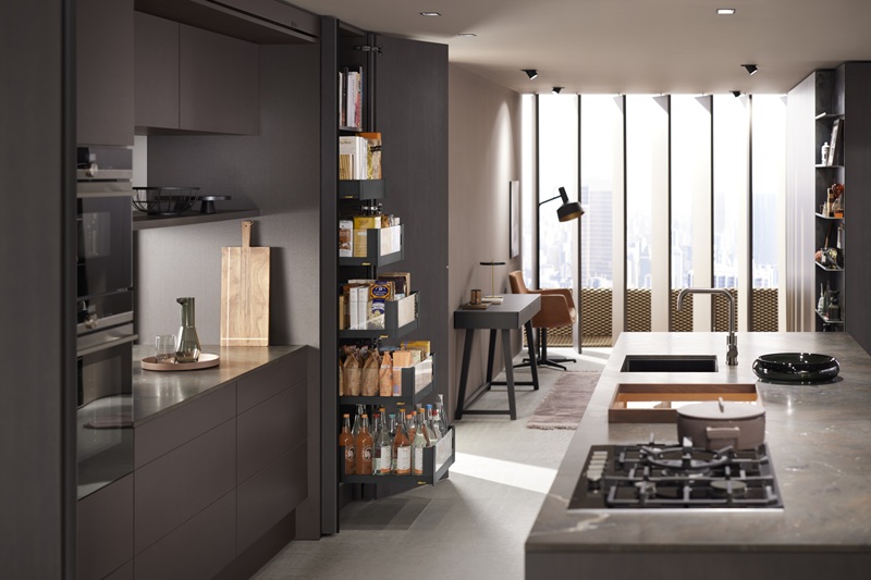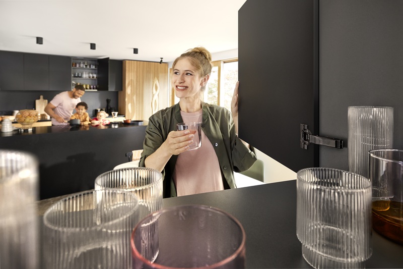 Klar, die persönlichen Präferenzen spielen eine wichtige Rolle – Papa David wünscht sich zum Beispiel eine stylische Inselküche. Neben der Form sind natürlich auch die Farben der Küche ein großes Thema. Diese zieht sich im besten Fall komplett durch – also auch mit passenden Zargendesigns für die Schubladen. Eine große Farb- und Designauswahl bietet zum Beispiel LEGRABOX von Blum. Auch Scharniere sind übrigens in unterschiedlichen Farben erhältlich: Neben der klassischen Nickelvariante bietet Blum seine Standardscharniere auch in der Farbe Onyxschwarz.