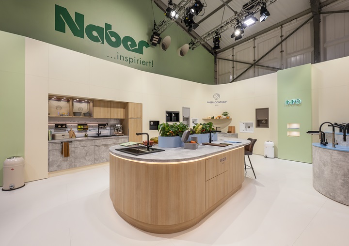 Neben SILQUA vergrößern hochwertige Composite-Einbauspülen das NABER-CONTURA® Sortiment. Diese robuste Materialart mit samtiger Oberfläche ist besonders für Kochendwasser-Armaturen geeignet. Na ber hat unterschiedlich große Modelle neu im Programm, die sich zum Teil auch für den flächenbündigen Einbau eignen. Wie SILQUA sind ei nige davon in faszinierenden neuen Farben erhältlich, darunter mar moriertes Weiß und schimmerndes Braun. Unterbau-Einbauspülen, die den pflegeleichten Composite Werkstoff auf eine charmant zurückhaltende Art neu in Szene setzen, hatten auf der Messe ebenfalls Premiere.