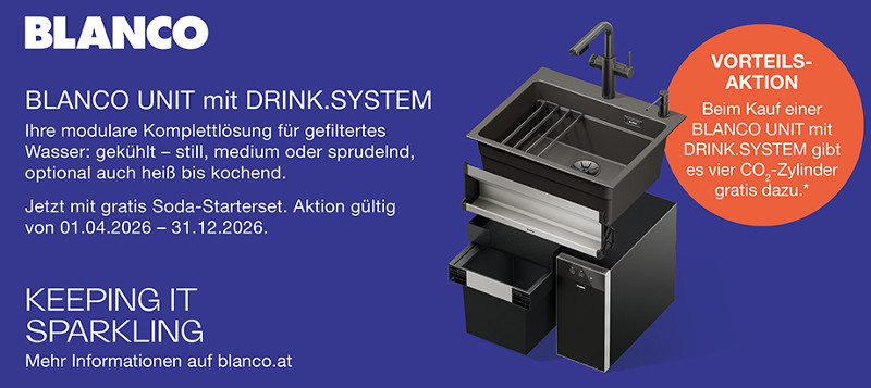 Ob still, sprudelnd oder heiß bietet der Küchenwasserspezialist für jeden Anspruch und Lifestyle das passende DRINK.SYSTEM. Noch besser wird’s im Ensemble. Die BLANCO UNIT, bestehend aus DRINK.SYSTEM, Spüle und Abfall-/Organisationssystem ist eine durchdachte Komplettlösung, die Komfort, Design und Nachhaltigkeit am modernen Küchenwasserplatz vereint – und steht im Zentrum der neuen Promotionkampagne, die nun „on air“ geht.