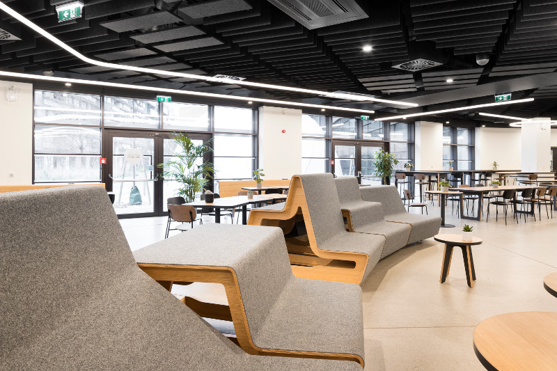 Vom Boden auf‘s Sitzmöbel: FINDEISEN nadelvlies sorgt an der Universität Wien für Look & Feel. Das robuste, stylische und nachhaltige Material FINETT 11 setzt in zwei Grautönen als Oberfläche für Möbel Akzente.