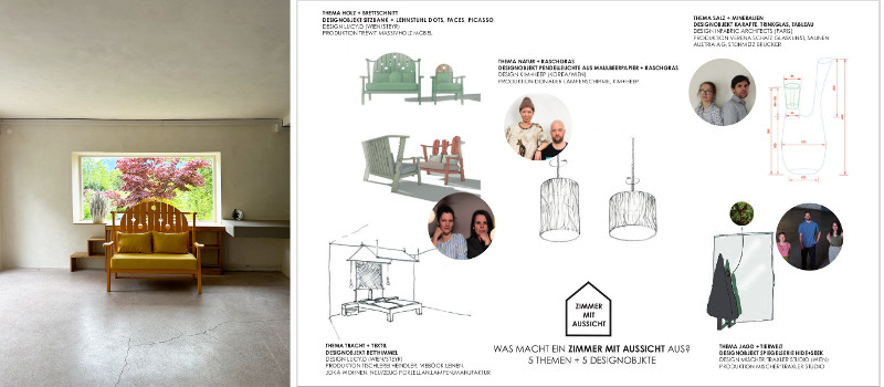 Wir wollten kein neues Hotel oder eine neue Location kreieren. Es gibt so viele charmante Unterkünfte, die fest in der Region verwurzelt sind, viel Tradition und Atmosphäre mitbringen. Also haben wir die Hotels gecastet, dann dort jeweils ein Zimmer ausgesucht, das auch tatsächlich eine besondere Aussicht hat, und mit zeitgenössischem Design, das auch einen Bezug zur Region hat, als „Zimmer mit Aussicht“ eingerichtet. Dafür sind wir auf Spurensuche nach Materialien, Handwerkstechniken und anderen Spezialitäten der Region gegangen und haben sie in neuen Designobjekten zeitgemäß interpretiert. Daraus ist schlussendlich eine Kollektion an Produkten entstanden, die es im Hotelzimmer braucht: Sitzmöbel und Lampen, Spiegel und Betthaupt, Teppiche und Textilien, die alle regional mit den Handwerksbetrieben in der Region umgesetzt wurden.
