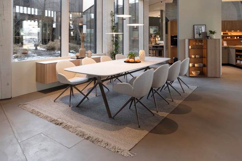 Mit nya beschreitet TEAM 7 dabei gestalterisch neues Terrain. Die in Zusammenarbeit mit der Berliner Designerin Stephanie Jasny entwickelte Serie steht für eine organische, weich fließende Formensprache, die in dieser Ausführung bei TEAM 7 bislang einzigartig ist. Tisch, Stuhl, Beimöbel und Küche verbinden sanfte Rundungen mit präzise definierten Linien und verkörpern die Idee ganzheitlicher Wohnkonzepte. Der nya Tisch überzeugt mit einem skulpturalen Metallgestell, das ihm besondere Leichtigkeit verleiht. Zusammen mit dem nya Stuhl entsteht ein Ensemble voll warmer Eleganz. Charakteristisch sind zudem die nya Beimöbel und die nya Küche, die die neue Ästhetik durch gerundete Wangen und eine sorgsam abgestimmte, haptisch orientierte Materialwelt fortführen.